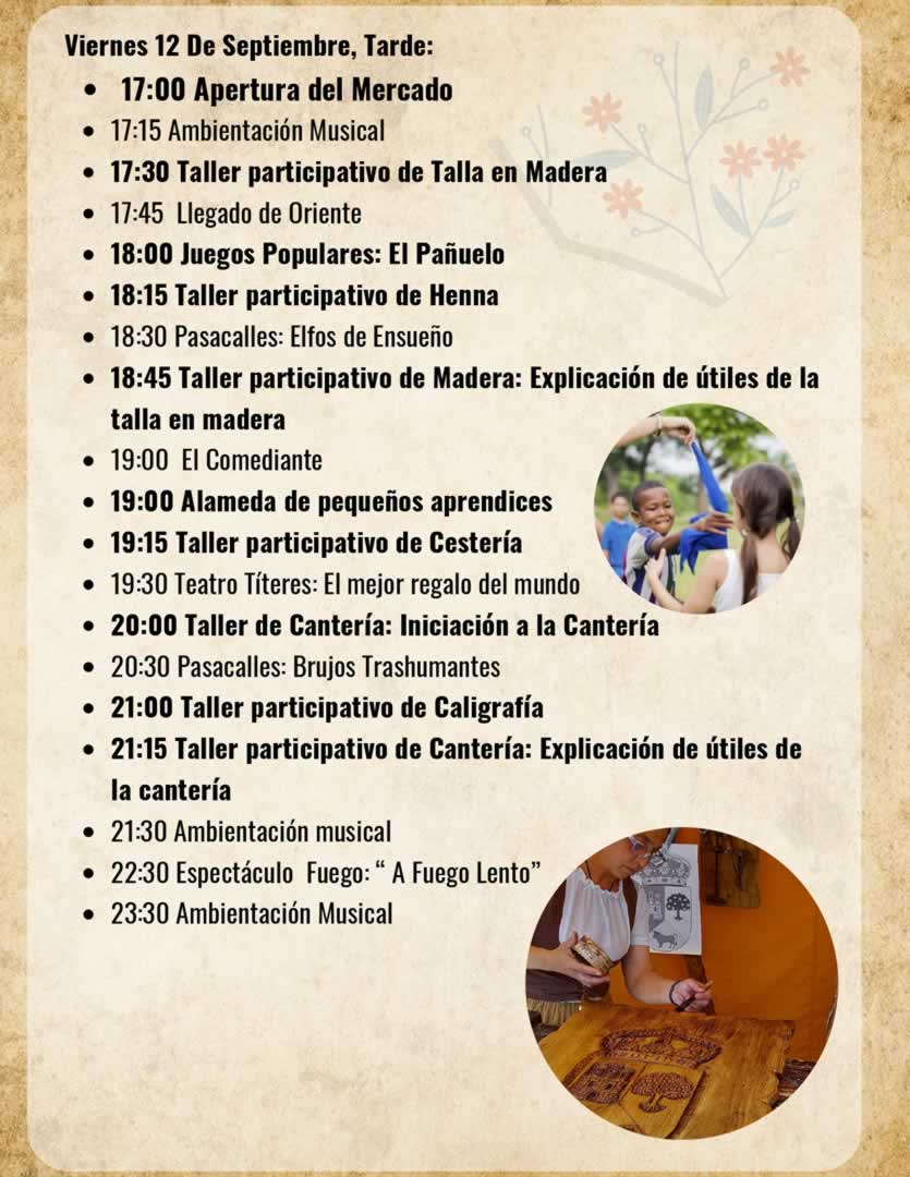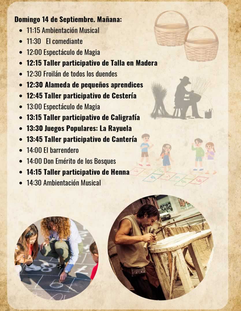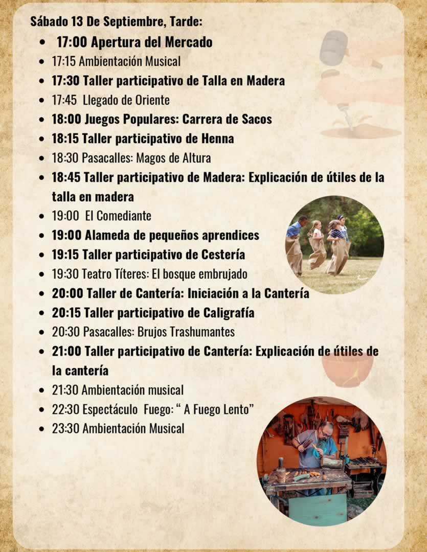 Las actividades complementarias incluirán talleres artesanales de talla en madera, vidrio soplado, cantería, forja y pintacaras, además de cuentacuentos, música en vivo y espectáculos entre los puestos.