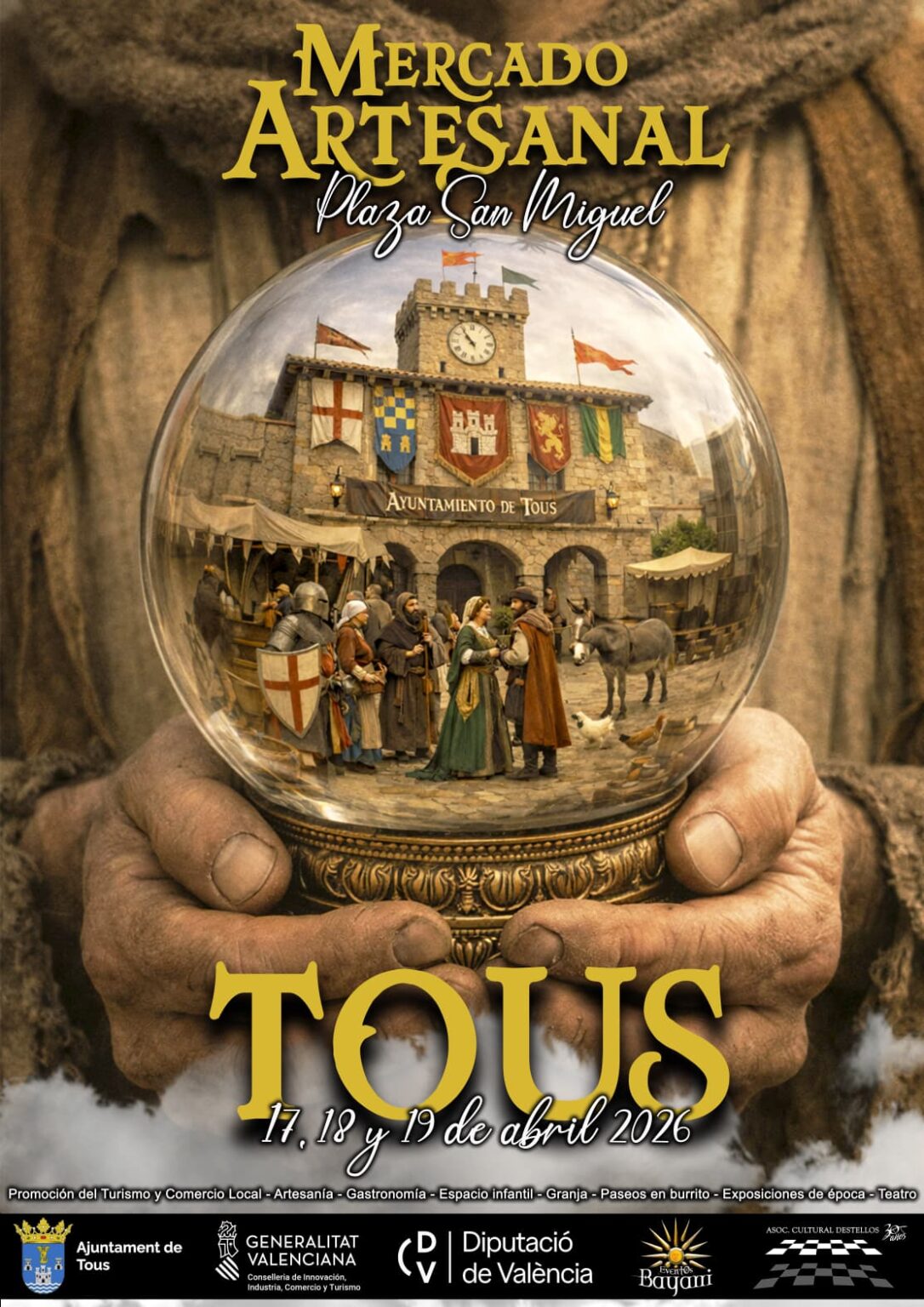El Mercado Artesanal de Tous, que se celebrará del 17 al 19 de Abril de 2026 en la localidad valenciana de Tous, es un evento cultural y comercial que convierte la Plaza San Miguel y el centro de la población en un vibrante espacio de artesanía, tradición y vida local. Durante tres días, las calles se llenan de puestos de artesanos y comerciantes que exhiben y venden productos hechos a mano, desde piezas de decoración y complementos hasta artículos gastronómicos elaborados con mimo y tradición.
