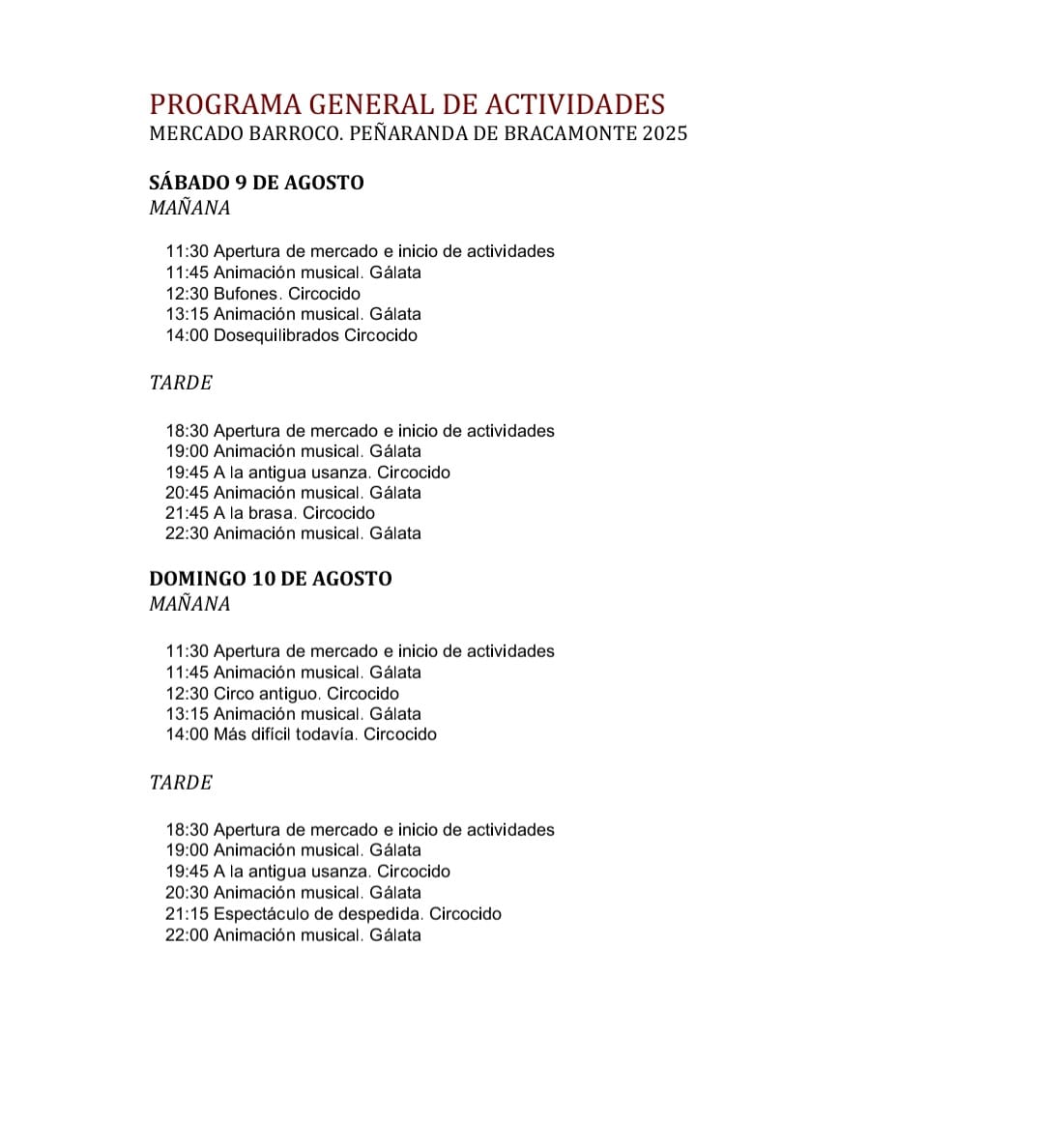 9 al 10 de Agosto 2025. Consultar la Programación del Mercado Barroco en Peñaranda de Bracamonte