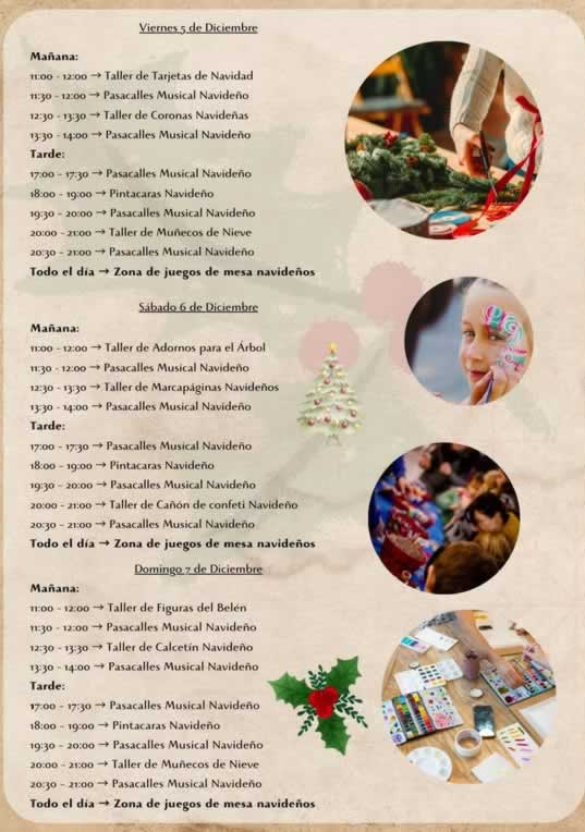 Los puestos artesanales, cuidadosamente decorados, ofrecerán una amplia variedad de productos: desde adornos navideños hechos a mano hasta dulces tradicionales, juguetes de madera, velas aromáticas y piezas de arte local. El aroma del chocolate caliente y de las castañas asadas acompañará a quienes paseen por sus calles, mientras la música navideña y las actuaciones en directo aportan un toque festivo y acogedor.