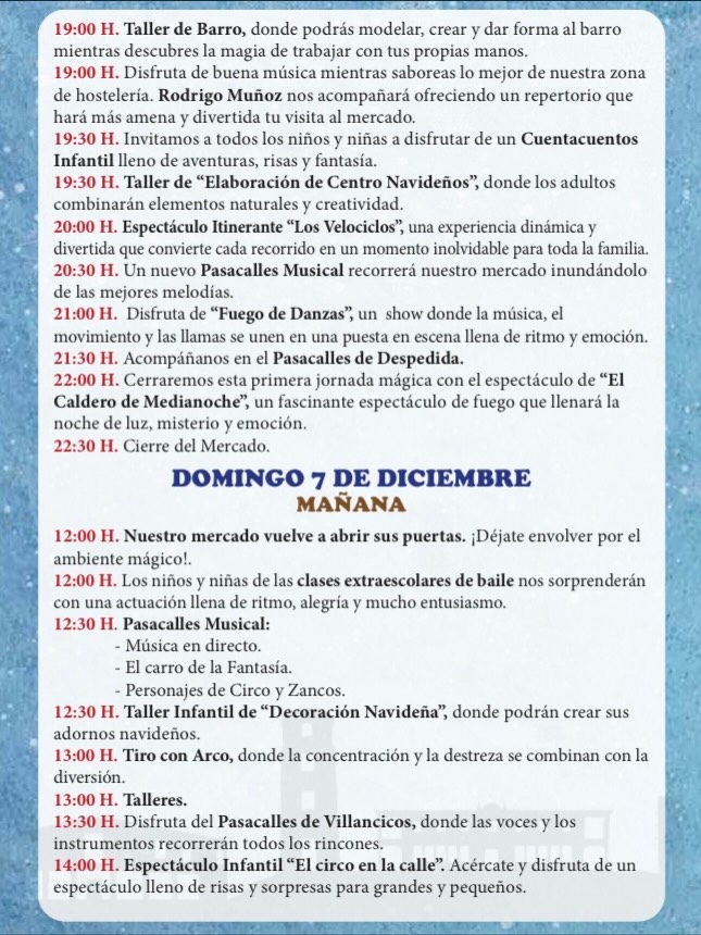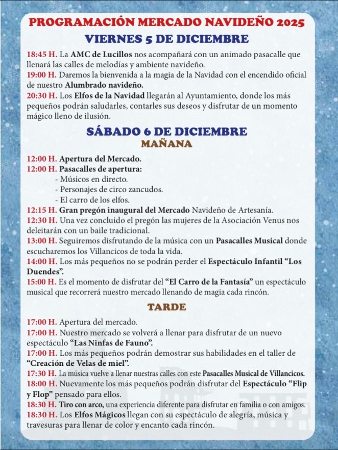 5 al 7 de Diciembre 2025. Consultar la Programación del Mercado Navideño de Lucillos.