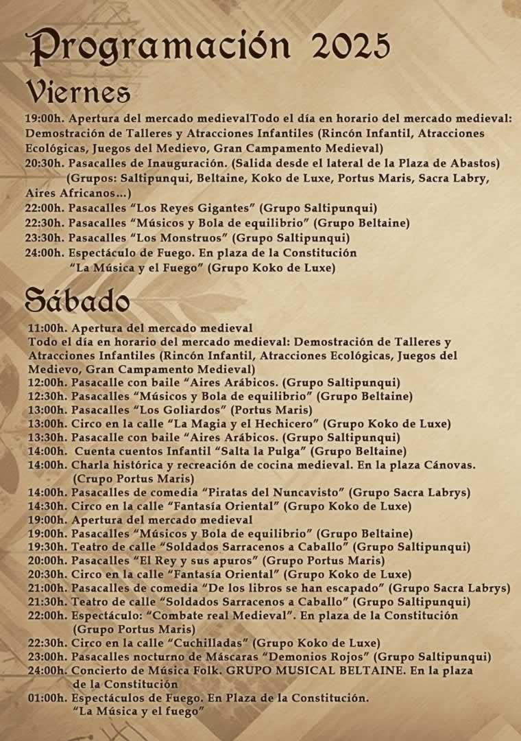 19 al 21 de Septiembre 2025. Consultar la Programación del Mercado Medieval de Aljaraque.