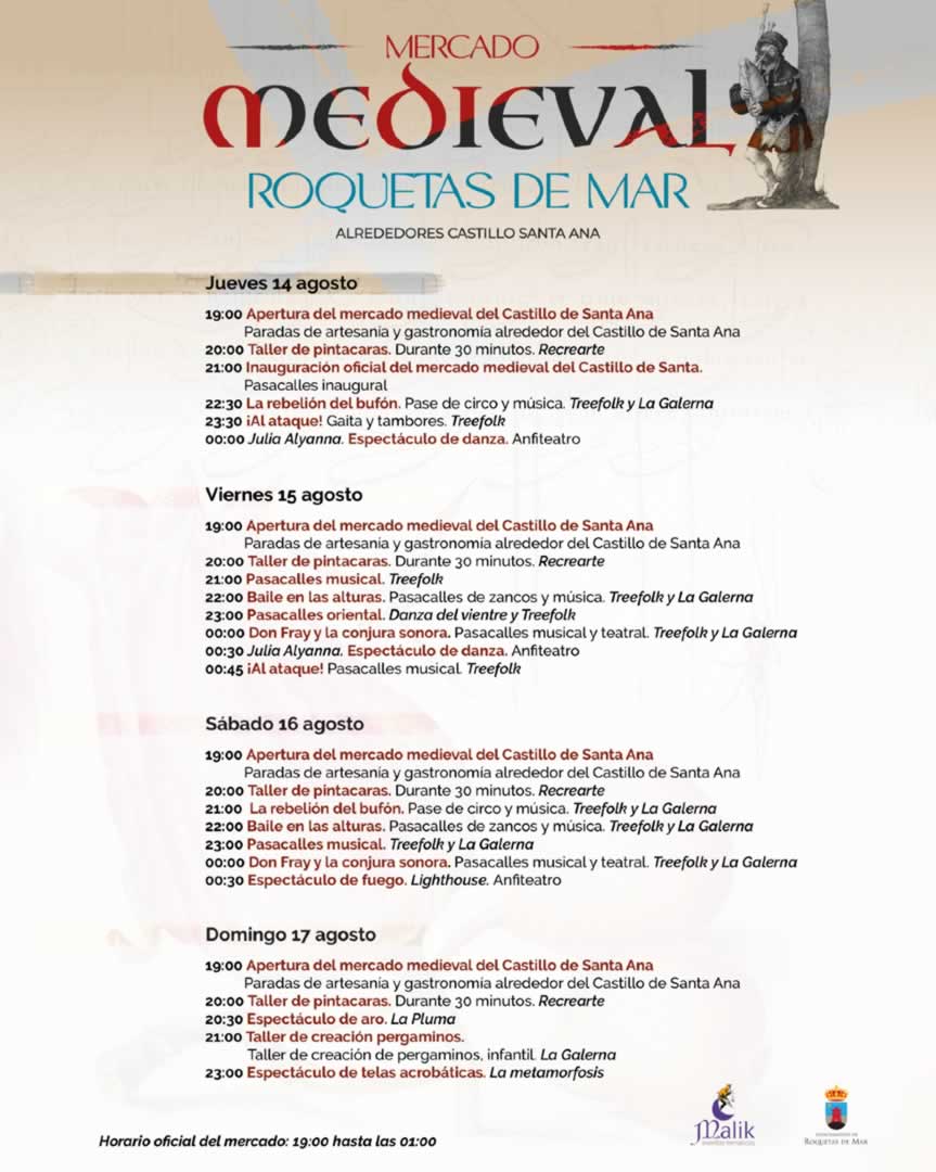 14 al 17 de Agosto 2025. Consultar la Programación del Mercado Medieval de Roquetas de Mar.