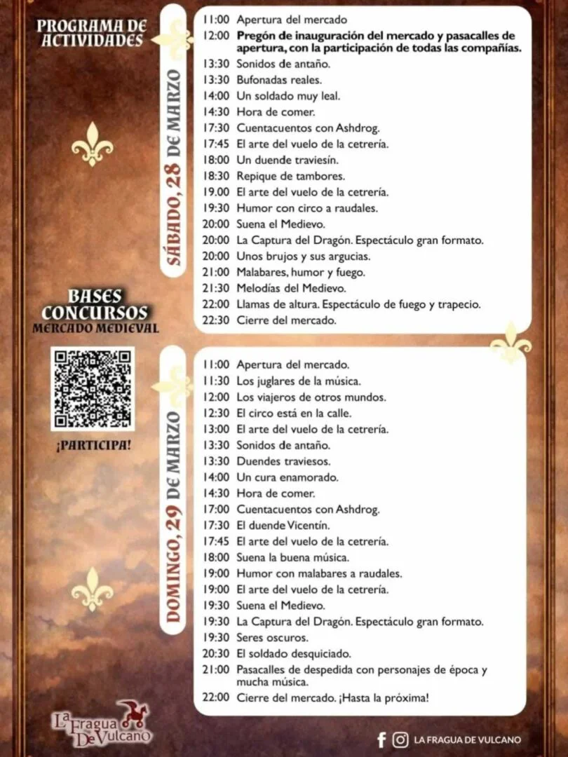28 al 29 de Marzo 2026. Consultar la Programación del Mercado Medieval de Zorita.