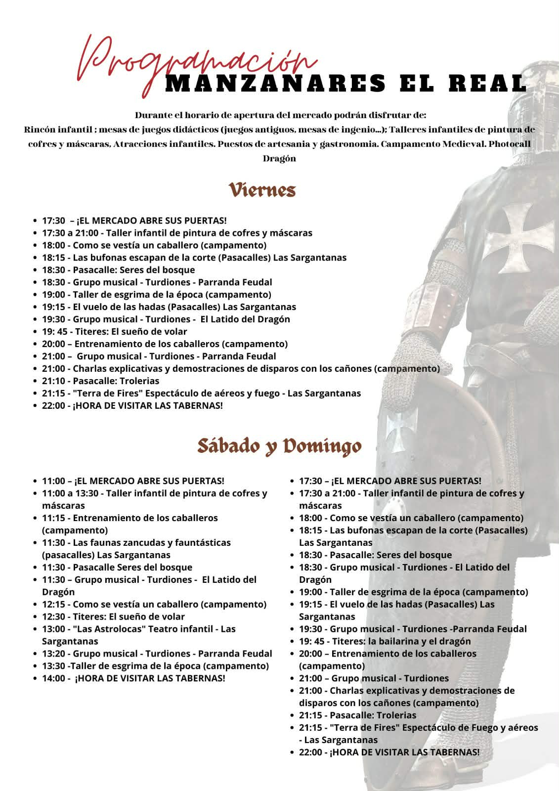 12 al 14 de Junio 2026. Consultar la Programación del Mercado Medieval en Manzanares El Real.