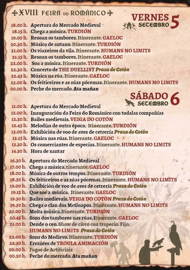 5 al 7 de Septiembre 2025. Consultar la Programación del Mercado Medieval – XVIII Feira do Románico en Negreira.