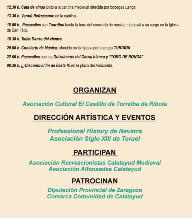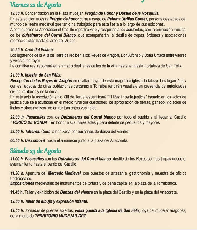 23 de Agosto 2025. Consultar la Programación de las XXII Jornadas Medievales de Torralba de Ribota.