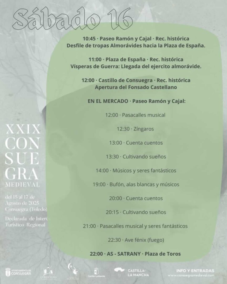 Uno de los momentos más esperados es la gran representación de la batalla en el entorno del Castillo de Consuegra, perfectamente conservado y testigo directo de los hechos. Además, se celebran cenas temáticas, visitas teatralizadas y actividades para niños.