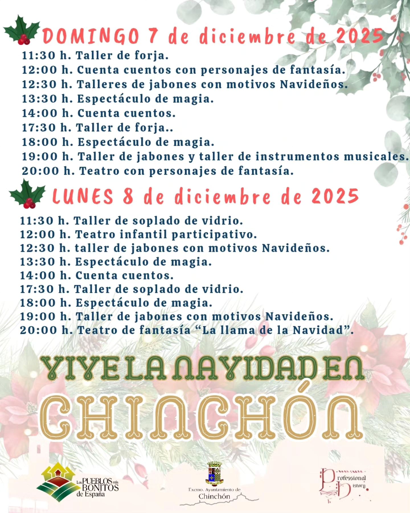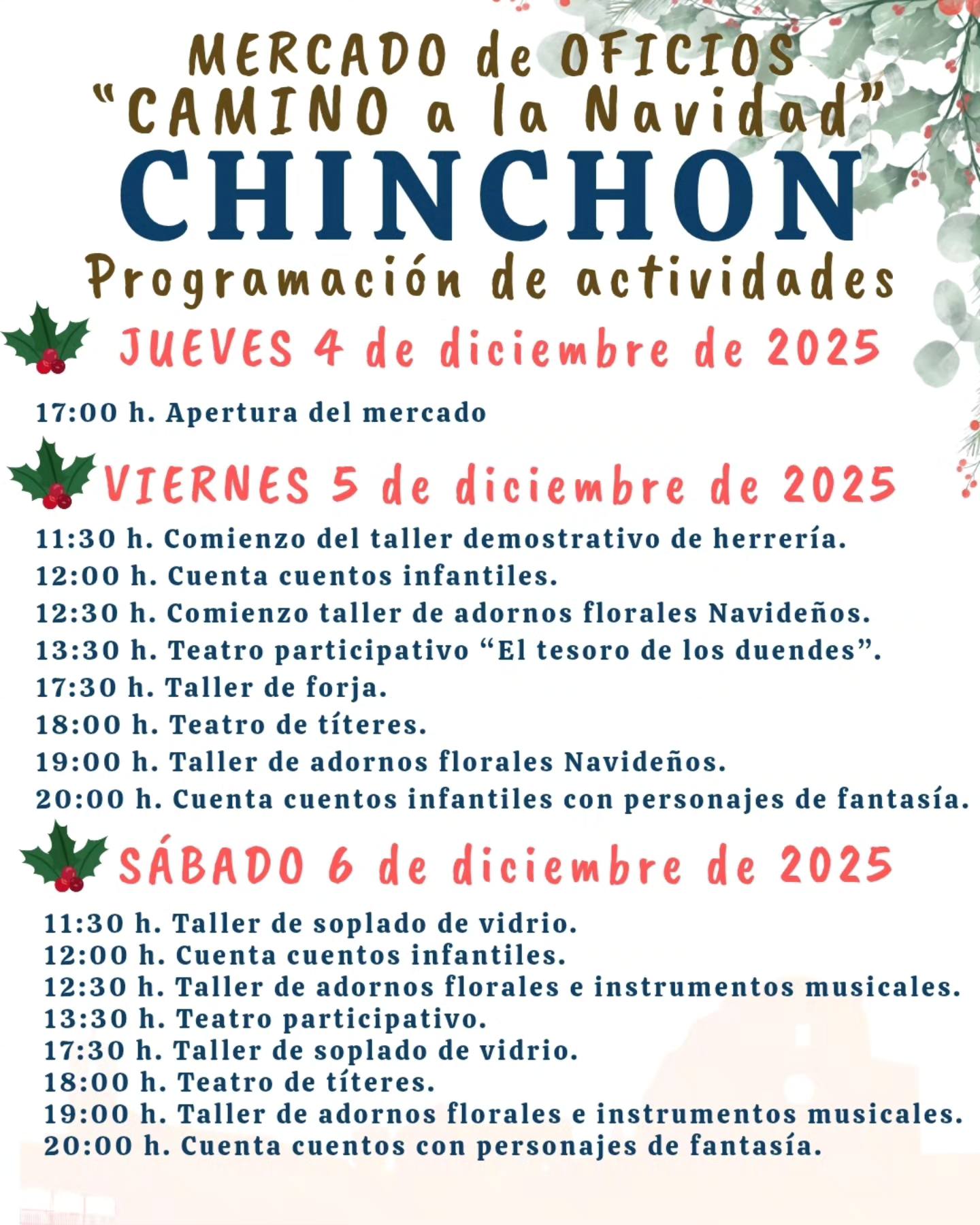 5 al 8 de Diciembre 2025. Consultar la Programación del Mercado de Navidad de Chinchón.