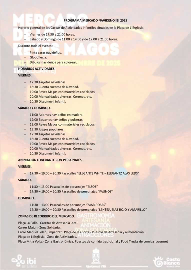 12 al 14 de Diciembre 2025. Consultar la Programación del Mercado de Reyes Magos en Ibi.