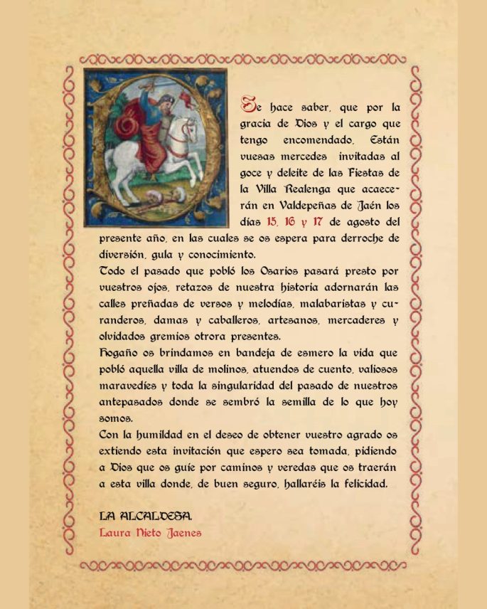 15 al 17 de Agosto 2025. Consultar la Programación del Mercado Las Realengas de Valdepeñas de Jaén.