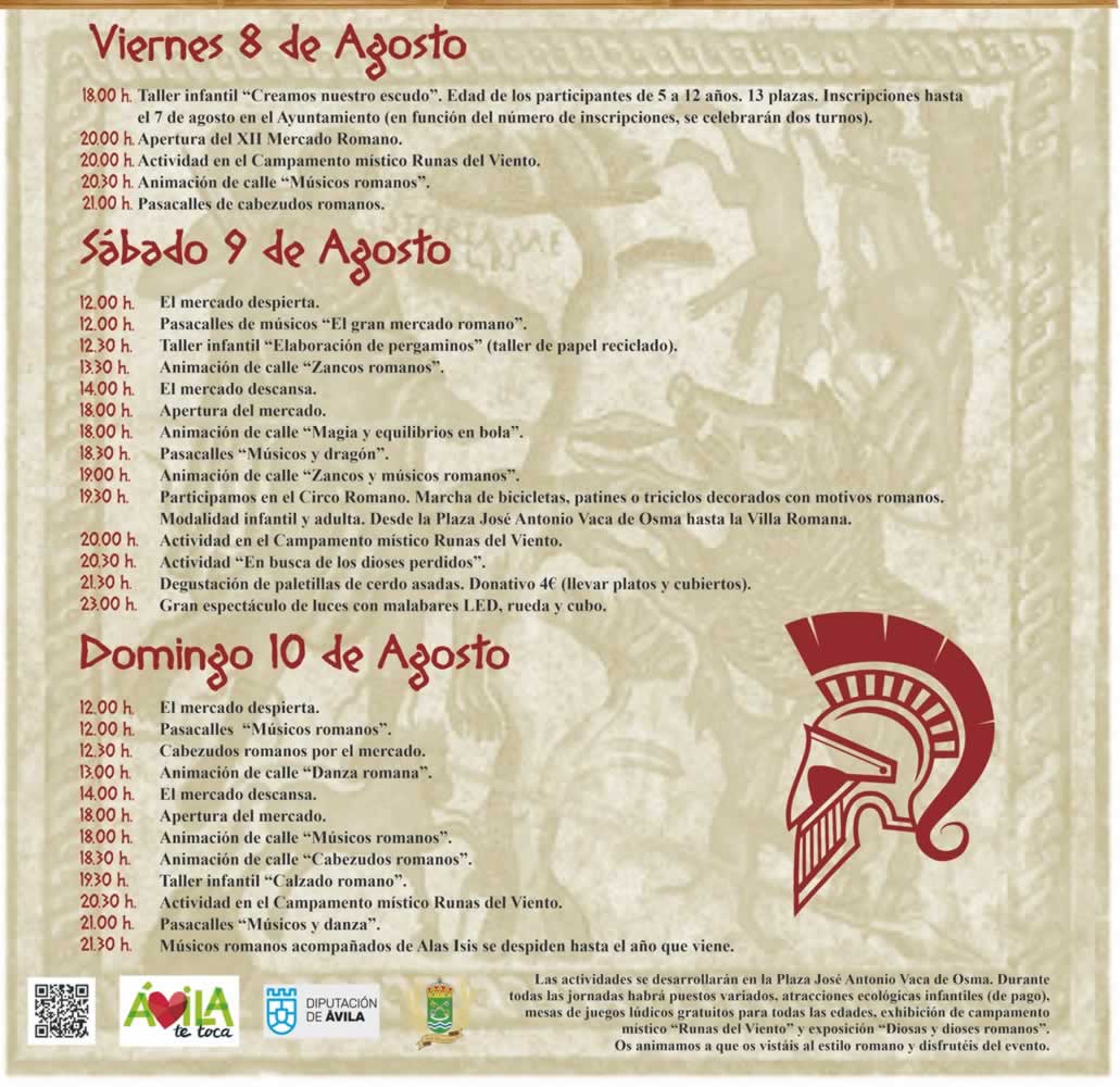 8 al 10 de Agosto 2025. Consultar la Programación del XII Mercado Romano de San Pedro Arroyo.